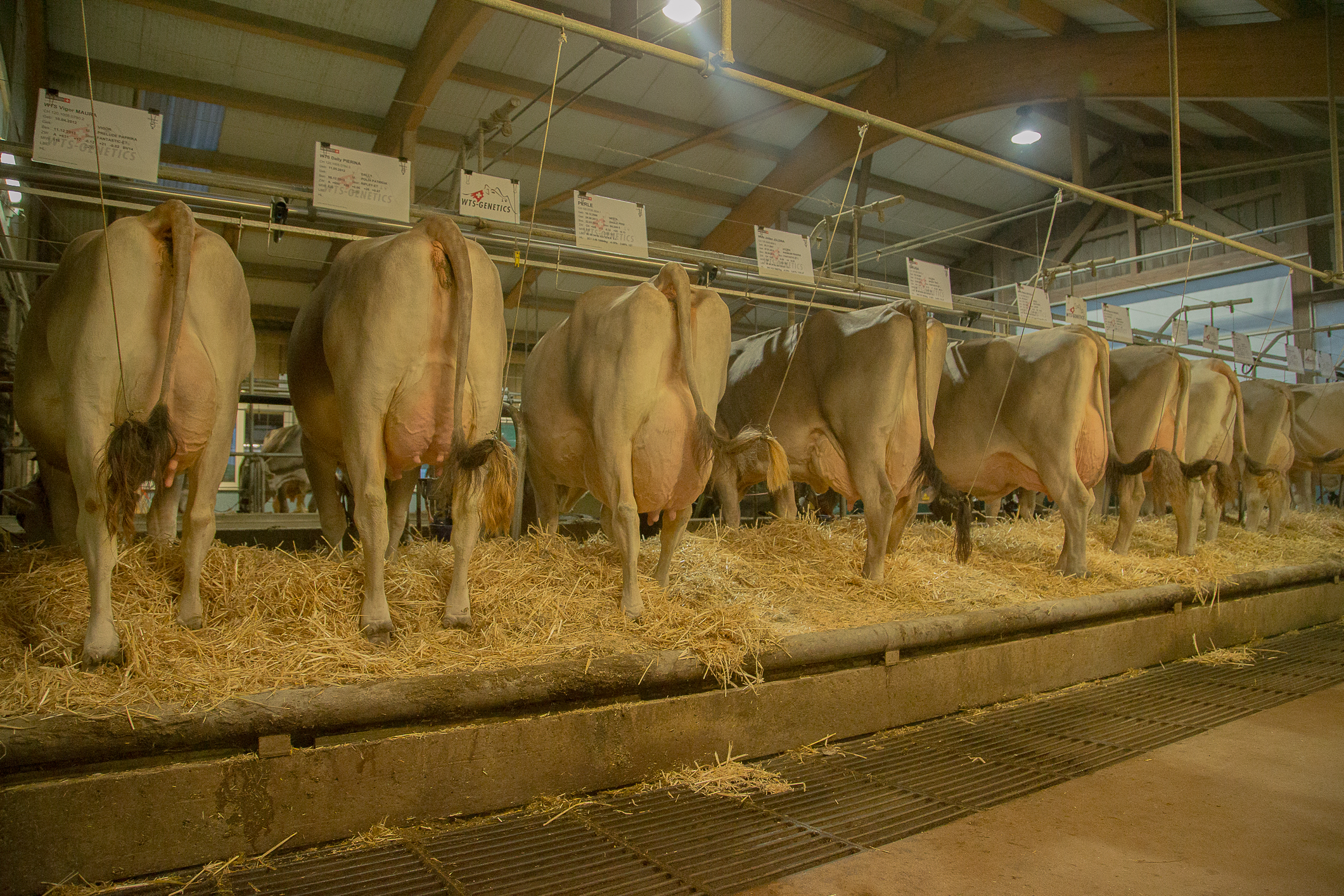 Nebst einer guten Milchleistung strebe ich ein tadelloses Exterieur an. Da wir Jährlich um die 25 Nutz Kühe verkaufen, spielt das Exterieur eine entscheidende Rolle. Um gute Preise zu erreichen, müssen die Melkbarkeit sowie die Zellen einwandfrei sein.