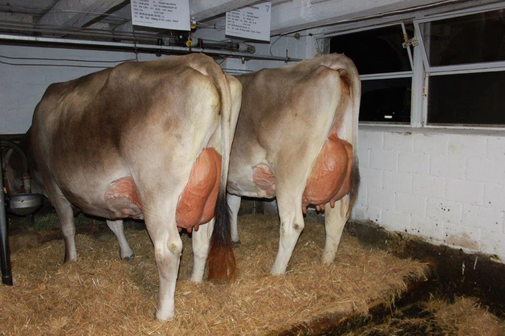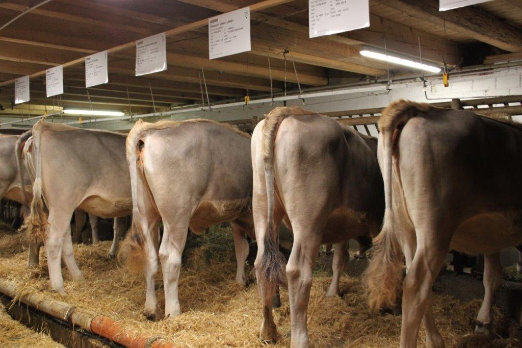 Die vier Kinder unterstützen sie dabei tatkräftig. Nebst der Braunviehzucht mit Aufzucht, betreibt das Ehepaar Schweinezucht auf dem Betrieb. Die Hälfte des Jungviehs befindet sich im Aufzuchtvertrag im Kanton Schwyz, der Rest auf dem Heimbetrieb in Anbindehaltung. Auch die Kühe stehen in einem gut eingerichteten Anbindestall. Geweidet wird kurz und Intensiv, so dass die Tiere nicht zu viel Energie brauchen und sich voll auf die Milchproduktion konzentrieren können. Im Kontrolljahr 17/18 erreichte der Betrieb eine Durchschnittsleistung von 8830 kg Milch, bei 4.12 Fett, 3.59 Eiwei und sagenhaften 52 Zellzahlen. Der Stallrundgang war ein absolutes Highlight, die Tiere standen da, wie an einer Schau. Ins Auge stachen sicherlich Payssli Penelope die in ersterLaktation VG 85 eingestuft wurde und ein ganz starkes Jungtier Grischa Star Gigi. Die ganze Herde bestach durchwegs mit einem starken Exterieur und ihrer Ausgeglichenheit. Werner stellte kurz jede Kuh vor wie sie produziert und was er an ihr schätzt. Für uns als Besucher machte es sehr Eindruck wie Werner offen über seine Braunviehherde sprach. Dies führte dann auch im gemütlichen Stall zu angeregten Gesprächen. Anschliessend an die Besichtigung wurden wir mit Speis und Trankversorgt und der sehr gelungene Abend klang bei einem wärmenden Kaffee aus.